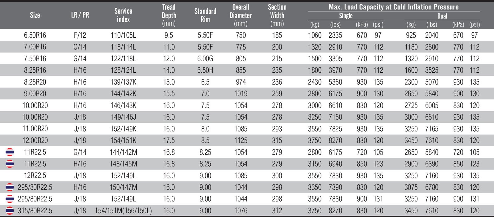 - Improved tread compound helps resist tears and ensure good mileage in on and off road use