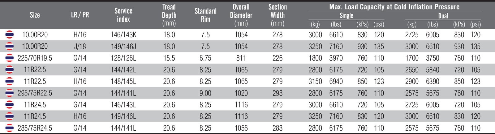• Wide and deep tread helps to promote even wear and long tread life resulting in low cost per mile