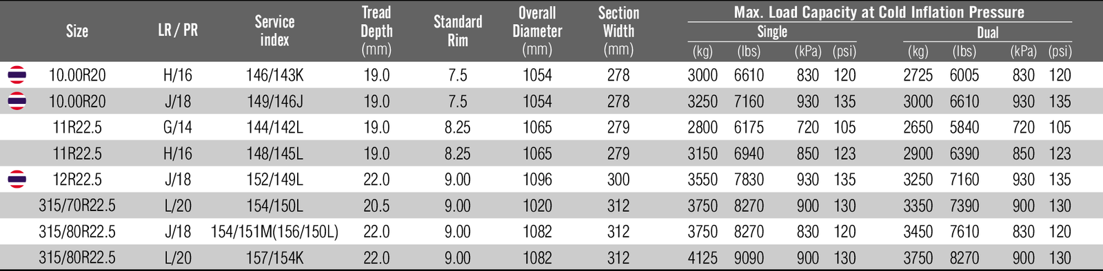 - Wide and deep tread enhances cost per mileage, driving stability and traction on highway