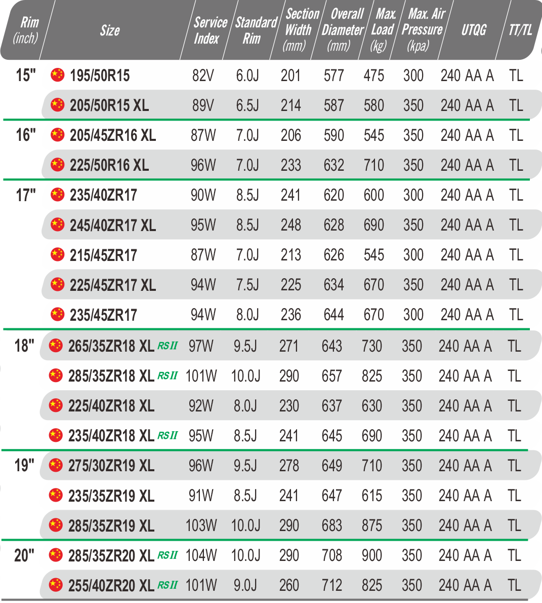 • Continuous center rib generates better grip in dry conditions and enhances high-speed stability